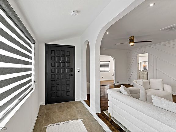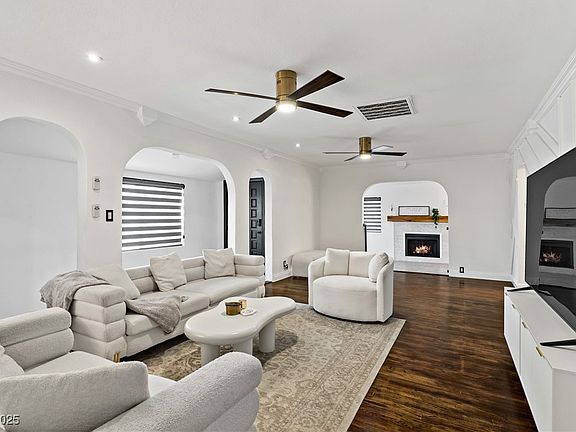 Experience the best of both worlds in this beautifully renovated mid-century modern jewel that is in the heart of old-school Las Vegas. This 1-story, 4BD/2BA home sits on a large 8,276 SF lot w/RV parking & no HOA. It features stunning hardwood & tile floors for solid flooring throughout the entire home. An updated kitchen w/S/S appliances, custom backsplash & hard-surface granite counters. Enjoy the arched architecture in the living room with abundant natural light. The cozy fireplace and mantle in the family room & elegantly tiled showers in both baths. Every detail has been thoughtfully upgraded, incl. plumbing. The backyard is a true retreat w/desert landscaping, mature cacti, built-in outdoor kitchen, firepit, putting green & RV gate w/alley access. This one-of-a-kind home blends classic Vegas charm w/modern comfort. Join us this Saturday, 10/25/25 from 11 AM–1 PM for some yummy baked goods and beverages & a tour of this exquisite home. You won’t want to miss it. See you there!