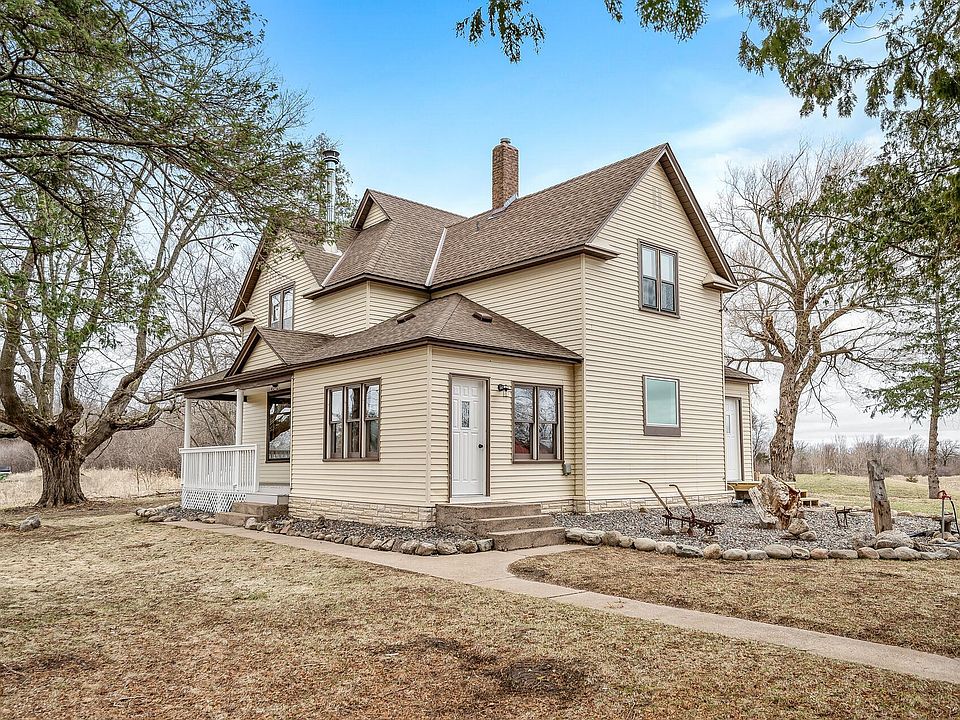 Turn of the century farmhouse on 5.5 acres ready for memories to be made! Drive up the country road and down the long private drive to mature trees and breathtaking views. Enter in through the mudroom to the updated kitchen with custom built cabinetry and center island, perfect for family gatherings and entertaining. Gleaming refinished hardwood flooring, leaded glass windows and an ornate built-in hutch adorn the living and dining rooms. Main level also includes 2 bedrooms and a full, updated bathroom with ample storage. Up the grand staircase, you will find 3 bedrooms, a full, updated bathroom and anoffice/den area, all with fresh paint and carpet. New boiler and baseboard heat.Two 40'x60' pole buildings. Building #1 has electric, full concrete floors, 2 floor drains, overhead doors and 12' sliding doors. Building #2 has electric, half concrete floors, and front/back 12' sliding doors - perfect for animals! Livestock allowed - fulfill your dream of owning a hobby farm today! 2022-05-18