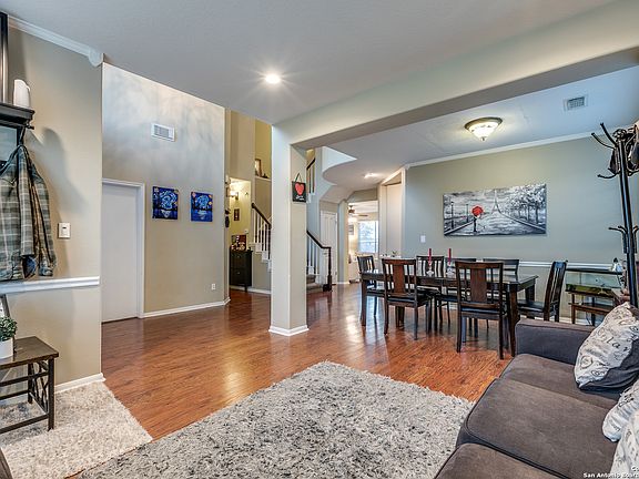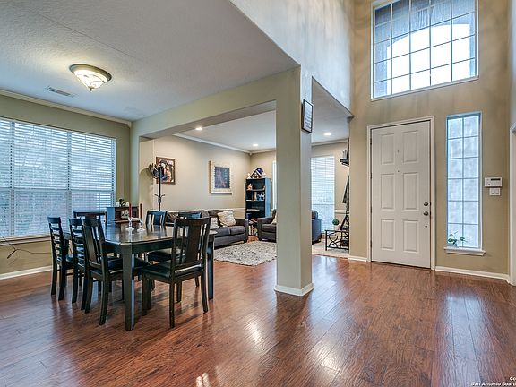 A lush front yard and blooming roses greet you as you enter this established home within the highly sought-after North East ISD and Johnson High School. Soaring ceilings, natural light, and gleaming floors showcase this cozy yet spacious floorplan. Two living areas and a large kitchen make entertaining easy. Thousands of dollars were spent in custom, Kraftmade cabinets, complete with slow close drawers & numerous organizing systems. A walk-in pantry, granite countertops, and stainless appliances will satisfy the chef of the house. A fourth bedroom downstairs can double as the perfect office, media room, or guest room. Upstairs, the Texas-sized owner's retreat offers not one, not two, but three closets! A soaking tub and extended modern shower comes complete with built-in shelving, rain shower, and a glass enclosure. An oversized vanity and double sinks offer plenty of counter space. High ceilings continue throughout the other two secondary rooms upstairs and highlight the generous amount of space and storage this home provides. When looking for privacy outdoors, you'll find mature trees and no rear neighboring homes in this quiet backyard setting. A quaint, blank palate allows you to create the perfect outdoor space just for you. Don't miss the oversized garage with an extended storage area. You're just minutes away from Tejada middle school, Johnson high school, shopping, churches, and restaurants!