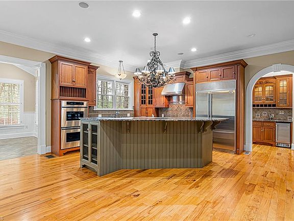 Tucked away in the gated Bromley Woods community, this 6-bedroom, 5.5-bathroom estate spans over 7,000 sq. ft. on 3 acres, showcasing timeless elegance w/luxury finishes. Hickory hardwood floors flow through the first & second levels, w/heated tile in tiled areas. Great room features a stacked stone fireplace. Plantation shutters & custom moldings throughout home. Primary has fireplace & spa-like ensuite w/marble & steam shower. Cedar closet & built-in safes.Gourmet kitchen boasts a Sub-Zero refrigerator, Thermador double ovens, gas cooktop, & warming drawer, w/wet bar, ice maker, & wine cooler for entertaining. All bedrooms have ensuite bathrooms, & two laundry rooms add convenience. A third-floor retreat includes a family room, bedroom, bath, & kitchenette. Outside, a stacked stone porch overlooks the fenced backyard & outdoor fireplace w/sitting area. A circular driveway & extended driveway lead to a 3-car garage. The home is fitted w/an energy-efficient system by HARRY BOODY, Inc.
