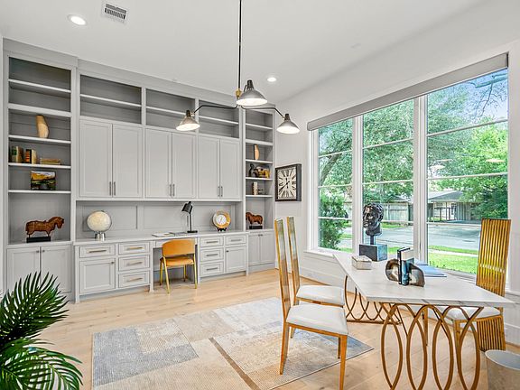 Stunning recent construction in a prime Highland Village/Lynn Park location. This thoughtfully designed home features a spacious open layout with a large island kitchen, Thermador appliances, and seamless flow to the family room and covered patio with built-in grill. A downstairs guest suite offers flexibility, while the upstairs includes a generous primary suite, secondary bedrooms, a game room with wet bar, and a large utility room. High-end finishes throughout include wide plank wood floors, quartzite countertops, custom iron stair rail, designer lighting and plumbing, and site-built cabinetry. Built by Northstone Builders, the home also features automated window shades, elevator capability, energy-efficient construction, and a sizable backyard with room for a pool. Just minutes from River Oaks District and Highland Village’s top shopping and dining.