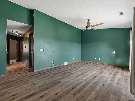 The entire main living area is gleaming with brand new vinyl plank flooring, providing a fresh and modern feel. The open layout flows seamlessly into the dining area with a convenient pass-through to the kitchen.