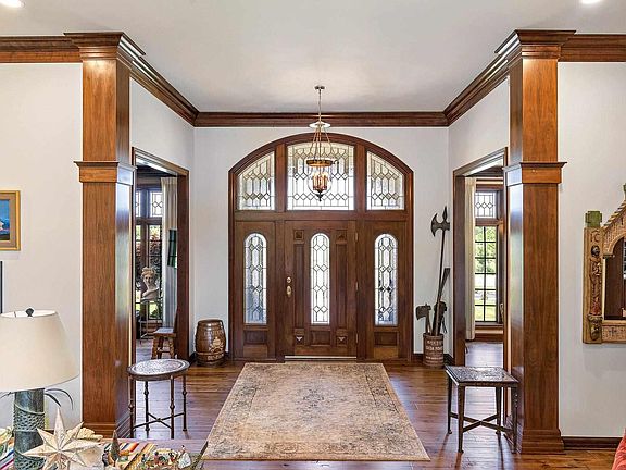 This spacious and elegant home offers over 6,800 sq. ft. of luxury living space. Situated to enjoy beautiful views of the Kansas Landscape. No expense was spared in the original construction of this impressive all brick home. The current owner's vision transformed the exterior & interior of this home. The main floor features 3.562 sq ft. of outstanding living space! You will appreciate the natural light that flows through all the beautiful windows (including many lead glass windows). Hickory wood flooring & Walnut cabinets & built-ins. This is the perfect home to entertain or just enjoy privately. The Foyer leads to a large Great Room, office w/custom built-ins, & formal dining room. The super sized Master Suite is a place to retreat and recharge! 2 separate sitting areas, a remodeled master bath w/large shower & soaking tub. The walk-in closet is a winner w/custom built-ins & plenty of hanging space. The family room w/fireplace is open to the kitchen area. New Granite counter tops were added. New microwave, cook top, & built in oven too. The breakfast area has a beautiful custom ceiling. New light fixtures & recessed lighting was added. Full basement (over 3,200 sq. ft. finished) includes family room w/gas log fireplace, game area, wet bar w/Granite counter top, & appliances, 2 bedrooms, full bath, & exercise room. Garage 42' x 27' - 4 car parking + extra bay for golf cart or lawn equipment. Gazebo & extensive professional landscaping.