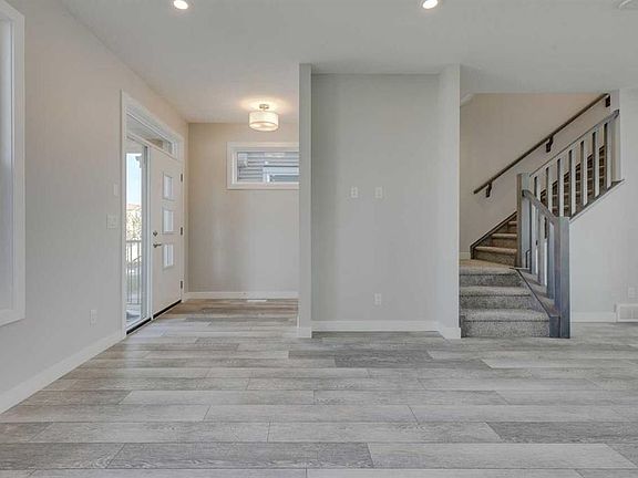 Discover the Eton, a move-in ready home in Chestermere with 1,490 sq ft of stylish living space. This urban mountain-style home features Hardie board and vinyl siding, black-framed windows, and an open-concept layout with luxury vinyl plank flooring. The rear-facing kitchen connects seamlessly to the backyard and includes Winter-stained maple cabinetry, quartz countertops, Samsung stainless steel appliances, a chimney hood fan, a large island, and a picture window above the granite sink. A functional back entry and walk-in pantry add convenience, while the front-facing great room is bright and inviting. Upstairs, the rear primary bedroom includes a dual-sink ensuite, complemented by upper-floor laundry and two additional bedrooms. Situated in Clearwater Park, one of Chestermere’s newest master-planned communities, residents enjoy exclusive access to the Clearwater Community Clubhouse. Photos are representative.
