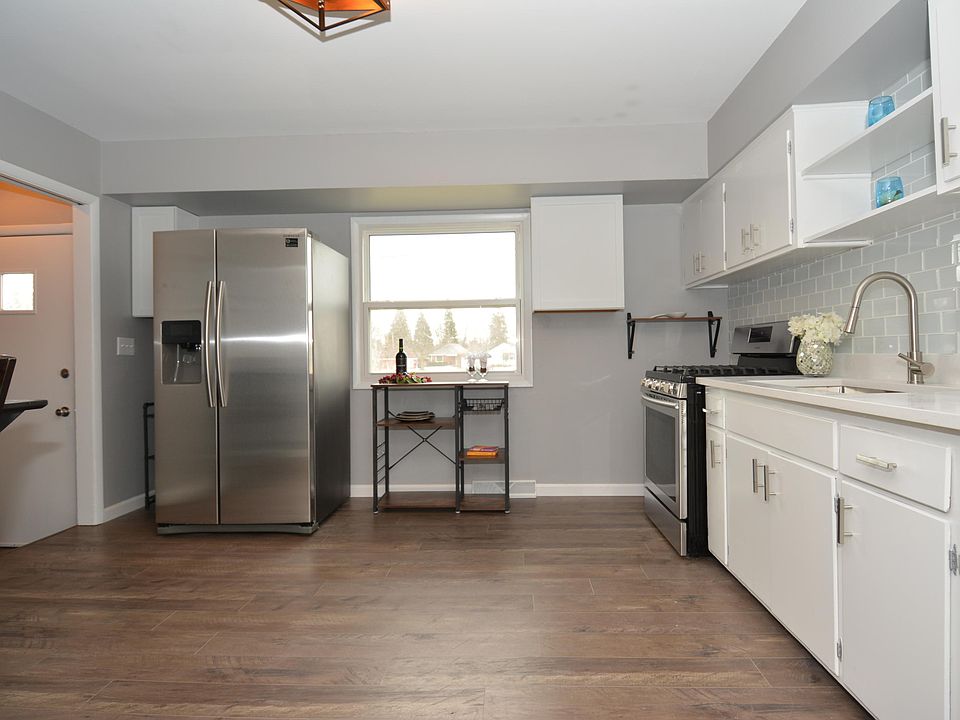 Beautifully remodeled 3 bedroom ranch home! Updated kitchen with quartz tops, tile backsplash, deep sink, new plumbing fixtures and new stainless steel appliances. Other updates include a remodeled bathroom, new light fixtures, fans, hardware and plumbing fixtures throughout. Beautiful new water-resistant plank flooring, new carpet and professionally painted interior. Huge finished rec room with second refrigerator and laundry machines. Shows like a new home! Big partially fenced yard that backs up to bike trail. Convenient location, easy to show.