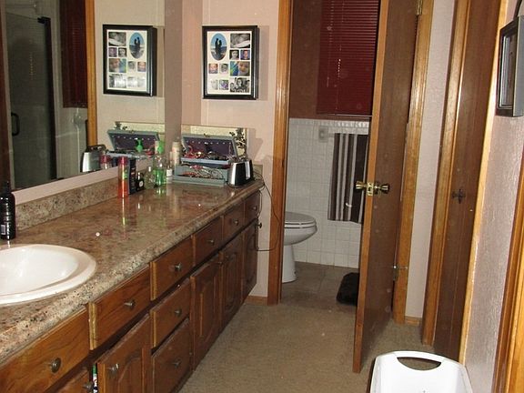 This very nice brick home is located in a quiet neighborhood. This property has a very open kitchen, dining, and nice size living area. The Kitchen has been recently renovated with updates such as freshly painted kitchen cabinets, new backsplash, and very stylish concrete countertops. Off the dining area is the laundry room that has plenty of room for storage. Cabinet storage is located above the washer/dryer hookups. The 2 car garage has 2 doors with parking for two vehicles and an extra area for tools or more storage. The master bedroom has plenty of room for a king size bed and dressers. The en-suite master bathroom has a double vanity and double closets with an attached toilet/shower room. The community/hall bathroom has been updated with new countertops and new tile in the tub/shower area. The other two bedrooms are good sized with plenty of closet space. On the outside of the property, a storage building with attached dog kennel is located in the backyard. The storage building has access from the back alley also. A privacy fence surrounds the backyard. The front of the property has a beautiful mature shade tree. The composition roof was replaced 2 years ago with a premium style shingle. Extra Information: Refrigerator, Stove, Washer, and Dryer could convey with acceptable contract. Average electric bill- $160 Average in summer Average water/sewer/trash bill- $120 Average- Gas bill-(furnace and water heater) $40 Summer/ $80 Winter Home security equipment- Vivint- $68 (All equipment included with sale)