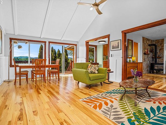 Upon entering, you?ll be overwhelmed with the unobstructed views out over the immense farmland to the coast range. The covered deck and hot tub offer even more opportunities to enjoy the serenity of this property and the views. Hickory floors, newer mini-splits, large shop, chicken coop, guest cottage and a large variety of mature fruit trees, berries, & grapes add to this little slice of heaven. Many updates over the years have made this one a beauty.