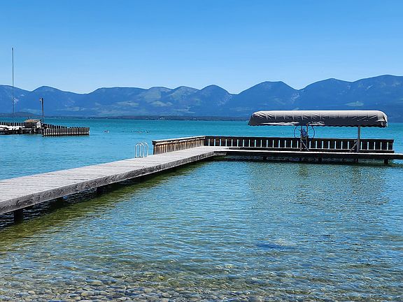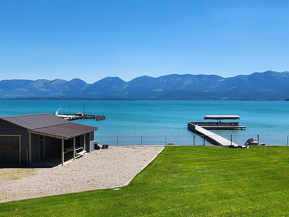 Flathead Lake home on 174 ft frontage and 1.7 acres just a few minutes away from Polson. Imagine watching the sun rise over the peaks of the Mission Mountains or the alpenglow settle late on a summer evening over Flathead Lk. Level off paved county road, this home is inviting with sunken living room and rock hearth next to the dining room area. Walk out to a deck overlooking the immense gently sloping waterfront yard. There's a spacious kitchen with lots of counterspace and desk. Finishing the main floor is the primary suite with attached bath and large walk-in closet. Additionally there's a main floor guest room and 3/4 bath. Downstairs is the third bedroom with attached bath and laundry room. Finishing the walk-out lower level is the family room with woodstove and more versatile space for hobbies, guests, office and storage - bring your imagination. A great feature is a side driveway to the lakefront boathouse. Call Dane Hollinger at 406-253-4625 or your real estate professional.