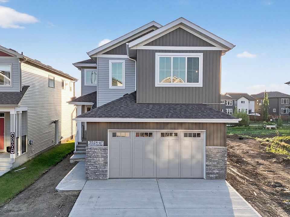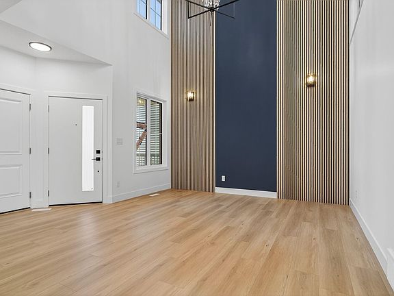 Completing March 2026! This brand new EAST facing, 2700 sqft home is a masterpiece of modern design and upgraded finishing featuring 5 beds and 4 full baths. Sitting on almost a 5000 sqft lot, with a massive backyard. This home backs on to a trail/trees. Step inside and be met by the sleek upgraded spindle railings and the exquisite luxury vinyl plank flooring that flows throughout. With two main floor living areas, an extended kitchen, boasting custom gloss cabinetry and a convenient spice kitchen with an additional pantry. Upstairs you'll find 4 additional bedrooms a room & laundry. Lighting upgrades include sleek wall sconces, upgraded light fixtures, and dining nook lights. The main floor bedroom and full bathroom offer both convenience and comfort. The open-to-below layout showcases custom millwork accent walls and a charming mounted electric fireplace, creating an inviting atmosphere for relaxation. With a separate entry to the basement, the possibilities for customization are endless.