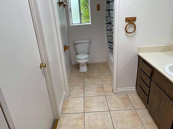 One-bedroom, one-bathroom upstairs unit in a 10-unit complex. Parking space included. The unit comes with appliances: fridge/freezer, stove, dishwasher, and air conditioning. Onsite laundry machines available, and there is a patio.
