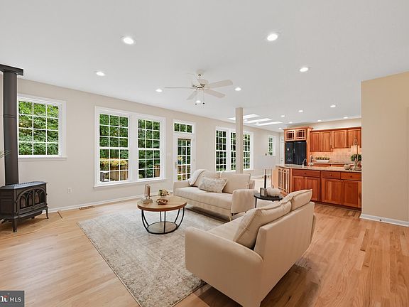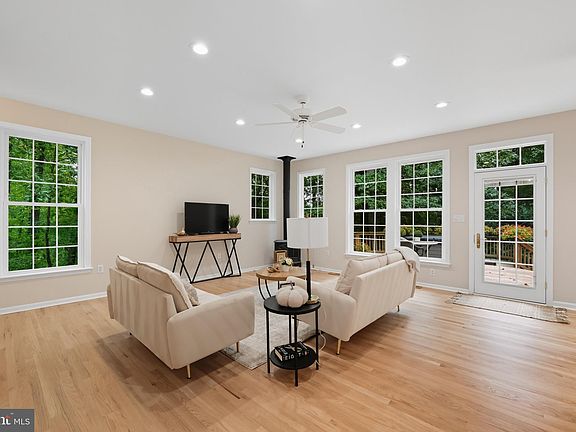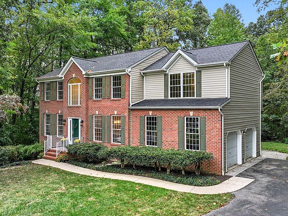 WELCOME HOME to this charming freshly painted Colonial on Marthas Vineyard Way that has 2 acres and offers a perfect blend of classic design and modern upgrades. The spacious kitchen, remodeled in 2006, features Cambria quartz countertops, abundant storage, skylights, and a NEW dishwasher (2022). As you enter the home you will notice the NEW (2025) gleaming hardwood floors plus new lighting throughout. The home has the ultimate open floorplan between the kitchen and family room that is flooded with natural light and french doors that open to a backyard oasis. Adjacent to the kitchen you will find a separate dining area for those family dinners and holidays. Working from home and need a great home office. There is a separate room off the entrance with glass doors that is perfect for that home office. Upstairs enjoy all NEW carpeting (2025),three oversized bedrooms and an expansive primary suite. Separate his and hers walk-in closets are a plus in the primary suite and cathedral ceilings that give the room a taste of elegance. The primary bathroom has a newly tiled shower, jacuzzi tub, linen closet and double sinks. A separate large laundry room is also on the 2nd level with plenty of storage and convenient for the entire family. The finished basement also has NEW carpet (2025) and a perfect location for an in-law or Au pair suite. A fifth bedroom is located in the basement with a full bath, wet bar, walk-out slider and plenty of storage space. This property sits on 2 ACRES of seclusion and is set back on a quiet Cul de sac. Oversized deck for outside entertainment is just off the family room. A little luxury waits for you with a hot tub on the deck that conveys and a fire pit in the backyard for those cool fall nights. This home is conveniently located with easy access to Washington DC, Baltimore, BWI with plenty of shopping and restaurants minutes away. NEW ROOF (2025), HVAC (2008), HOT WATER HEATER(2023), new water filtration system (2022), NEW pressure tank for the well (2022) and home generator that conveys.