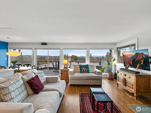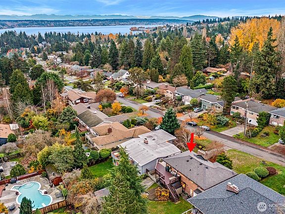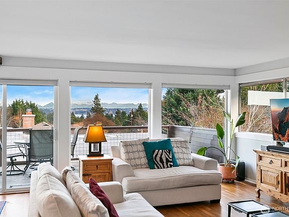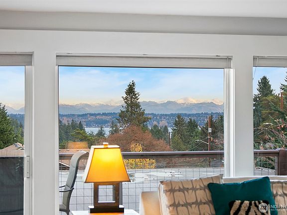 Rare opportunity in Alicia Park, a quiet & coveted NE Seattle neighborhood. This solid mid-century home showcases sweeping 180° views of Lake Washington & the Cascades through walls of windows that fill the home w/ natural light. The recently remodeled kitchen opens to dining & living, offering a seamless, modern flow for everyday function & entertaining. Newly refinished hardwood floors elevate the main level, which features 2 spacious bedrooms & a full bath. The walkout basement offers tall ceilings, a large bonus room, 2 add’l bedrooms - one w/ a generous WI closet, ¾ bath, & laundry. Expansive deck w/ stunning views. Large 8,222 sq ft lot w/ carport + detached garage. Minutes from U-Village, UW, parks, trails, Light Rail, I-5, & 520.