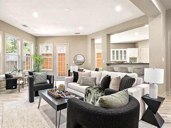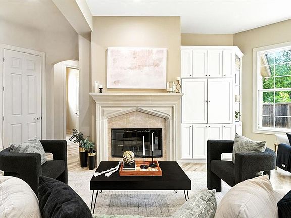 This thoughtfully designed home features soaring ceilings and expansive windows that fill the space with natural light. The spacious kitchen offers generous prep and storage space, perfect for those who love to cook and entertain, complete with a breakfast bar and dedicated dining area. Additional highlights include a cozy fireplace, custom built in media cabinetry, a private enclosed yard, and a two car garage.