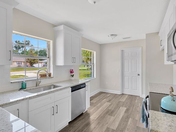 En-suite bathroomFlex spaceIndoor laundry roomBreakfast nookStainless steel appliancesWhite cabinetsRemodeled pool home
