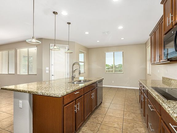 Beautiful 4 bedroom 2.5 bathroom home with large open floorplan! Huge kitchen with natural maple cabinets, stainless appliances, granite countertops, and double ovens. Large kitchen island with bar seating, eat-in kitchen and formal dining room. Neutral flooring and paint throughout. Each bedrooms is generous in size and includes a walk in closets. 3 car tandem garage and St10 ft RV Gate. Stunning curb appeal and low maintenance landscaping in both front and back yards. Situated on quiet cul de sac with partial view fencing that backs to natural wash/ playground area.