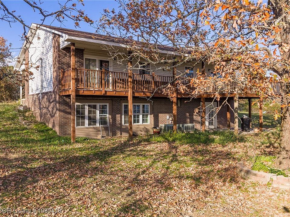 5 bed 3 bath home on over 25 mostly wooded acres, with large creek-fed pond, only a few minutes from town & off of paved roads. 2 car detached garage with additional workshop area, also with a roll-up door. Extra's outside include a large chicken coup/pen & a 3 bay 20x40 pole barn. Enjoy magnificent views from both the walk-out patio on lower level, & the deck/balcony on the upper! New roof installed on house and garage last yr.