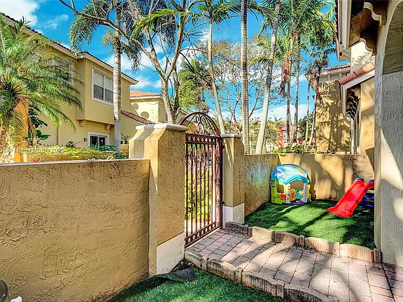 Welcome to this very rarely available townhome in the highly desired community of Merrick Preserve. Courtyard entry to this 2 bedroom and 2.5 bathroom townhome with a very spacious living room and a separate dining area. Large kitchen with washer/dryer and a large pantry. Enjoy the community pool on a hot day in Florida. Community is in walking distance to shopping centers, and close to major highways. No rental restriction and can rent right way.