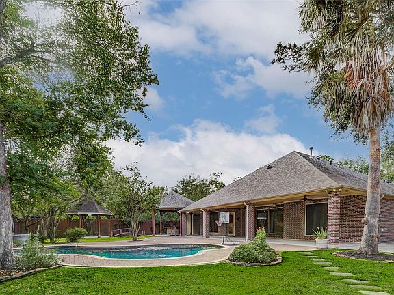 Welcome to this beautifully crafted custom home on over half an acre, offering a rare blend of interior comfort and resort-style outdoor living. This five-bedroom residence features a functional layout with a first-floor media room, formal dining, and a spacious living area overlooking the backyard. The kitchen includes rich cabinetry, granite countertops, stainless appliances, and an oversized island with seating. The private first-floor suite offers a large walk-in closet with custom storage and a well-appointed bath with dual vanities and a frameless shower. Two additional bedrooms share a Hollywood bath, with another guest room and full bath nearby. Upstairs provides a generous game room, bonus flex room, and a guest bedroom with full bath. The outdoor retreat includes a covered patio, full outdoor kitchen, sparkling pool, gazebo, and a detached brick outbuilding with storage and exterior half bath. A full-home Generac generator is also included!