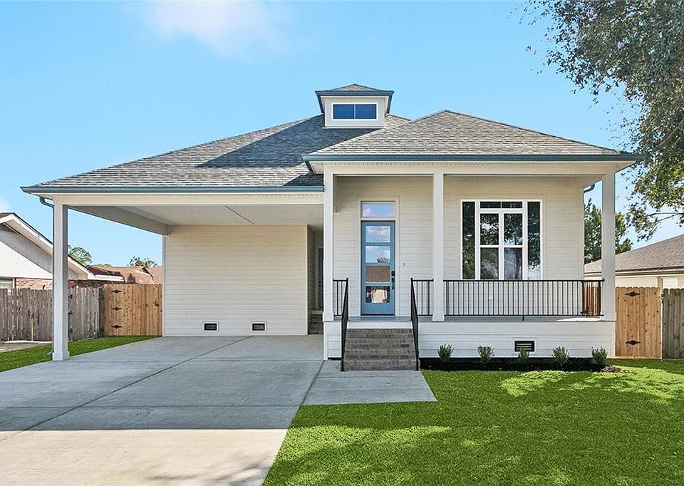 Stunning 3 bed 2 bath NEW construction located in Chalmette, LA. This beautiful home has an open floor plan with SOARING 12 foot ceilings throughout the entire home and 8 FT doors. The double stacked kitchen cabinetry, along with the high end stainless appliances and quartz counters gives this kitchen a luxurious look! Oversized bedrooms with large closets and storage. The primary bedroom has ample space and an OVERSIZED DREAM walk-in closet with an attached luxurious bathroom with a soaking tub walkin in shower combo. Large double driveway with a carport for covered car storage and/or entertainment space along with a fenced in yard. This one is a must see!