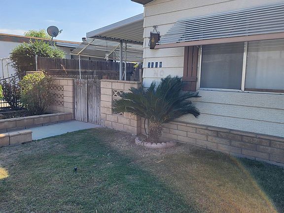 Own the land and the home with this beautiful property. Located in southwest Bakersfield inside the Sunrise Estate community which has RV parking available and a fenced community park for kids to play or let your dog have room to run. Great starter home or invest for the savvy investors delight. This 2 bedroom, 2 full bathrooms, boast 2 large living room areas, carport for multiple vehicles, a side entry patio with a small garden, spacious back yard has a cover patio, small work shop, spa tv area, and 3 storage units and you still have room to relax.