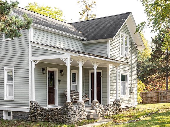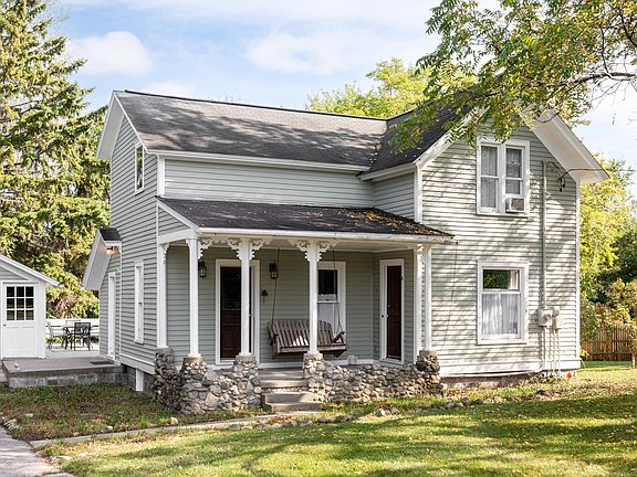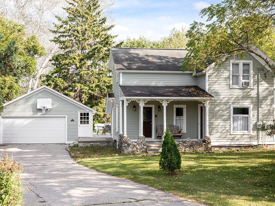 Idyllic farmhouse in Suttons Bay with direct access to the TART trail! This inviting 2-bed, 2-bath farmhouse sits on a full acre of open, park-like grounds with direct access to the Leelanau Trail via a private wooden deck path. Inside, you'll find roughly 1,300 sq ft of character and comfort—beautiful hardwood floors, a bright kitchen with modern updates, and cozy living spaces filled with natural light. Outside, enjoy a two-car detached garage, fire-pit area, and mature shade trees offering privacy and space to relax. Perfectly located just 5 minutes from downtown Suttons Bay and only a half-mile from Bahle Farms Golf Course, this property combines countryside charm with convenience to Leelanau’s best recreation, wineries, and waterfront. A rare opportunity to own a piece of Leelanau with trail access right out your back door. Listing data, supplemental documents have all been obtained from third-party sources and/or the seller. Information is deemed reliable but cannot be guaranteed for its accuracy. Buyer and/or its agent should verify before closing.