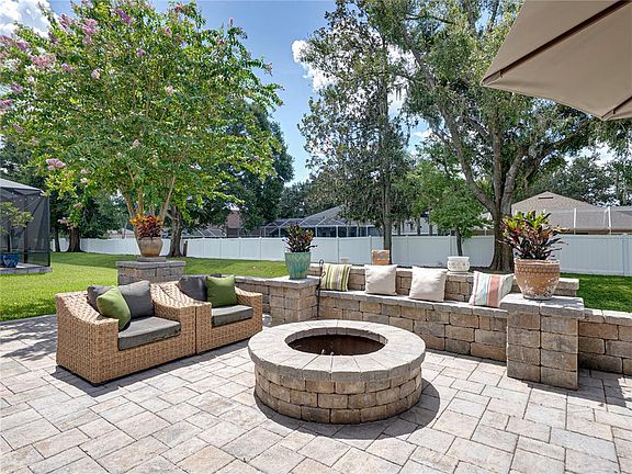 Absolutely stunning 4BR/4BA home nestled in the established community of Starling Ridge. Upon entry, you find travertine and wood-look laminate throughout the entire home (with only carpet on the stairs) and crown molding in the common areas on the lower level. To your immediate left is the formal Dining Room perfect for those holiday gatherings and entertaining guests. To the right are glass french doors leading you into the office where you will find ample lighting as well as a spacious area for creativity and productivity. Moving into the home, you will find yourself in the open concept Great Room perfect for game nights with friends and family. The Great Room flows into the Kitchen and features sliders to the lanai. The Kitchen has so many features including a large eat-in area, stone counters, a 4 appliance GE suite in stainless steel with double oven, breakfast bar, lots of cabinetry and counter space. As you look around the Kitchen you will envision whipping up weekend breakfasts or even family dinners where everyone gathers to connect. Also on the first level is secondary bedroom and full bathroom, nice for visitors or a multi-generational arrangement. Off the Great Room is the conveniently located Primary Bedroom boasting an En suite bathroom with a dual sink vanity, good-sized walk-in shower, and large walk-in closet. Moving up the stairs you find the Bonus Room with extra storage space and a reading nook, additional full bathroom, 2 additional bedrooms, both with walk-in closets, and connected with a full jack and jill bathroom. Enjoy your weekends out on the screened lanai or back patio that includes a built-in bench and fire pit. A great place for morning coffee or weekend get-togethers! Schedule your showing today.