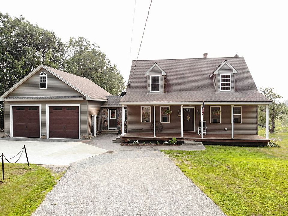 Spacious 3 bedroom, 2 bathroom cape style home, open concept design, cathedral ceilings, hardwood floors, wood burning stove as well as gas fireplace. First floor master bedroom with his and hers walk in closets. There is a oversized 2 bay attached heated garage with oversized doors and a large unfinished storage space above. Half finished basement with wet bar built in, basement walks out to a beautiful concrete patio with built in fire pit. Covered front porch and large back deck providing beautiful sunsets and views of the back yard and neighboring fields. House sits on 2.76 acres in Shapleigh Maine, surrounded by natural stone rock walls and a small private pond. Please Contact Isaac to set up a viewing. 207-651-7102