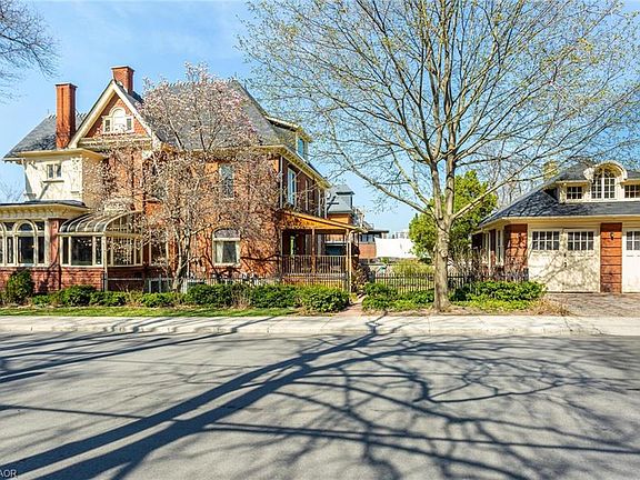 The Nortonia Mansion | A Legacy Estate in Hamilton’s Prestigious Durand Enclave | Step into the grandeur of The Nortonia — a Queen Anne English Mansion nestled in Hamilton’s exclusive Durand neighbourhood. Celebrated in The Globe and Mail as a highlight in “An Exhibit of Hamilton’s Mansions,” this stately residence is a masterwork of turn-of-the-century craftsmanship. A true Downton Abbey lifestyle awaits, with a regal façade and a succession of exquisitely panelled rooms accessed via 9-ft French doors. Soaring 10.5-ft ceilings crown the principal spaces, where original wood detailing remains intact. The formal dining room boasts a shimmering crystal chandelier, heritage stained glass, and a balcony walkout. Rich wood panels and antique swinging doors lead to a granite-clad chef’s kitchen, beautifully blending old-world charm with modern function. The Petite Salon’s coffered ceiling, exposed wood beams, and jewel-toned stained glass lead into the luminous Conservatory Atrium — perfect for morning tea or evening entertaining. A grand staircase showcases an 8-ft stained glass tribute to Lady Nortonia, a centrepiece of this heirloom estate. The second level continues with 10.5-ft ceilings, four generous bedrooms, spa-inspired 4-pc and 5-pc baths, and large laundry room. A separate entrance accesses a legal 2-bedroom apartment — ideal for guests, multi-generational living, or income. The original Carriage House includes a 2-car garage and upper loft studio with separate entry — a creative space, rental, or private retreat. This rare offering combines heritage, flexibility, and income potential in a historically rich neighbourhood. Estates of this calibre rarely come to market. The Nortonia Mansion is more than a home — it’s a family legacy of enduring beauty and exceptional craftsmanship.