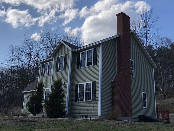 Young Colonial on private lot. Spacious kitchen featuring SS appliances and granite with large breakfast bar. Hardwoods throughout 1st Fl. Fireplaced living room. First floor laundry. Master BR with large bath and walk-in closet. Bonus room for office/playroom/bedroom. Bath updates and fresh paint. Basement for entertaining including wet bar. Wood stove for supplemental heating. Two-car garage wired for generator & welding. Alarm system in place. Adjacent lot included (block 10 lot 12) for additional privacy. Seasonal views of Mt Watatic. Move-in ready.