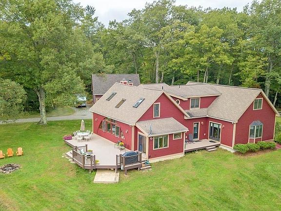 Tucked away at the end of a quiet country road you'll find this 37 acre equestrian oasis offering a visual banquet of bucolic views. Rolling pastures, cleared fields & wooded trails you & your horses will love! This almost 3000 sq ft, 4 bed, 2 bath custom home was built in '82, but completely remodeled & added onto in 2003 w/ careful consideration for equestrian, farm or county living. Open concept post & beam kitchen, dining & living area that exits to the main deck. Huge 1st floor master suite w/ 2 walk in closets & Master bath w/ dual sinks & jacuzzi tub. 2nd BD, another full bath, laundry and vaulted foyer compliment the 1st floor. 2nd floor offers 2 more bedrooms, office & bonus/hobby/teen room. Equine/outdoor amenities include approx 15+ acres of cleared pasture, 3 stall barn w/ water, electricity & hay storage, 100x200 riding arena, new run in, chicken coop & garage w/ storage & workshop. Scenic pond & extensive trail system make this a rare find! Only 17 miles from Worcester!