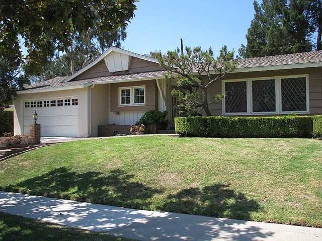 Adorable Single Story Home in Excellent Condition * Ready to Just Move-In & Enjoy * Spacious Living Room is Illuminated w/Pretty Beveled Diamond Glass Picture Window & Warmed by Handsome Stone Hearth Fireplace * Unique Stained Glass Touches Add Charm and Character * Newer Neutral-Toned Paint and Carpeting - Easy To Decorate With Your Furnishings * Inviting Updated Kitchen Features Breakfast Counter Seating & Opens Ideally into the Family/Dining Room * Brand New Laminate Wood-Toned Flooring Throughout * Plenty of Windows & Doors into the Yards Make Each Room Light & Bright * Super Spacious Bedrooms - Two Include Walk-In Closets & Ceiling Fans * Secondary Display Storage Closet in One Bedroom * Updated Master Bathroom Complete w/Soaking Tub & Separate Shower, Plus Large Vanity Area * Hallway Bathroom Services Two Bedrooms Nicely * Accent Lighting Added * Direct Access into 2-Car Garage * Laundry in Garage * Great Floorplan in an Excellent Neighborhood * Grassy Backyard and Upper Area Pleasantly Terraced with Bountiful Fruit Trees & Perfect For Your Own Personal Gardening Enjoyment *