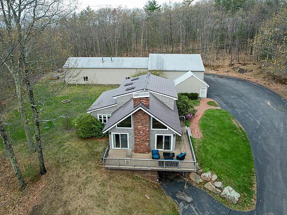 Offer Deadline: Monday 5/8 @ 5 PM. Welcome to the best of both worlds - a stunning place to live, work, and play, all in one convenient location. Just minutes from Massabesic Lake, Routes 121, 101 and 93, this versatile home is both centrally located and tucked away on nearly 3 acres. Step inside this well maintained 3 bed, 2.5 bath to find hardwood floors, exposed beams and an abundance of natural sunlight. The stunning living room features a cozy wood stove and opens up to the galley kitchen and dining area - ideal for entertaining your family and friends. Sip your morning coffee on the deck and take in the privacy of the wooded lot. Remote workers will enjoy the first floor home office and adjacent screened in porch. Relax in the first floor primary bedroom donned with 2 closets and ensuite full bathroom. The main floor also includes a convenient half bath and laundry room. Upstairs you’ll find two additional bedrooms with generous closet space and a second full bathroom. The oversized accessory building offers 4,000+ square feet of endless possibilities - use it for your home business, dance studio, and more. This heated building includes an office area, half bath, upstairs rooms, ample parking, and more than enough space for an oversized workshop and storage. Showings begin by private appointment on Thursday, May 4th. Or join our Open House this Sunday 5/7 from 11-1.