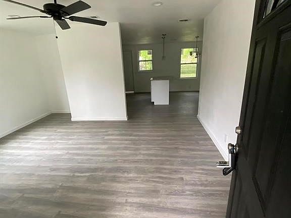 Beautiful renovated 3 bedroom and 1 bath house has a nice exterior of black and gray with landscaping of black mulch and green shrubs that will blossom out while comfortably living at this home. The interior is equipped with new laminate gray floors throughout. White/gray tile in the bathroom and shower area. This house has stainless steel microwave and electric range in the kitchen with a big island in the middle that will be brighten with cannon lights. Each bedroom has a ceiling fan and spacious closet. The laundry room has washer/dryer connections for stackable machines. The backyard is very large to enjoy summer parties and family. AC/heat unit replaced October 2024 and plumbing done December 2022. Give me a call and let's make it your new home or investment property. Property sold as is.
