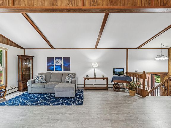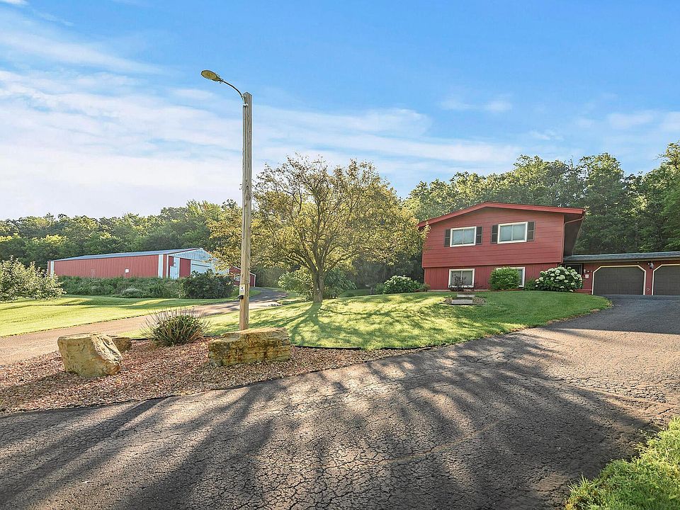 Great County Lot with a 36 x 99 shed with an additional 21 x 36 attached building. Elevated 3.278 acre lot with an abundance of Colorado Blue Spruce, Pines, Apple Trees and a wooded back drop! Many updates in the last 5 years! Blacktop driveway, attached 2 car insulated and painted walls with an 11 x 6 work area and a 3rd garage door in the back large enough for your riding lawn mower! Huge wrap around deck, walkout basement, nicely maintain landscaping and huge yard! Boiler Hot Water System with Central Air and a back up furnace as well. Septic System has 2 drain fields. Newer windows in 2005 and roof in 2019. Security System and new water softener and drinking systems in 2024!