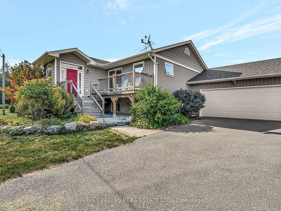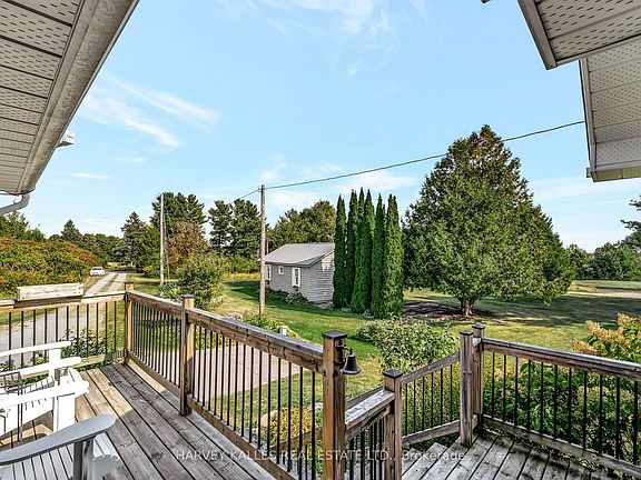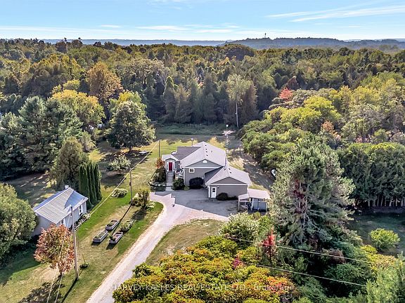 Nestled among the rolling hills of Cramahe, this beautifully updated bungalow offers 5.5 acres of peaceful countryside living. Thoughtfully renovated with modern flair, the home showcases quality finishes throughout and a layout designed for comfort and connection. Step inside to a bright, open-concept main floor where natural light fills the living spaces. From the front foyer, enjoy a south facing seasonal view of the lake. The modern kitchen features a central island, abundant cabinetry, generous counter space, and a double oven, perfect for both everyday meals and entertaining. The living room invites you to relax by the wood-burning fireplace or step through the walkout to a spacious back deck overlooking trails and greenery. Two bedrooms and a 5-piece bathroom complete the main level. The finished lower level expands your living options with a large rec room for gatherings, a third bedroom and full bath, plus a flexible bonus room ideal as a home office, gym, or guest suite. Outdoors, the property offers so much to explore: a detached workshop with hydro for hobbies, maintained walking trails winding through the trees, and grounds dotted with fruit trees, gardens, raised beds, and wide open lawn. Whether you're seeking a place to garden, play, or simply unwind in nature, this property delivers! All this, just minutes from downtown Colborne, one of Northumberland's friendliest communities and a short drive to Presqu'ile Beach, parks, cafés, and shops. A truly exceptional opportunity for a relaxed country lifestyle.