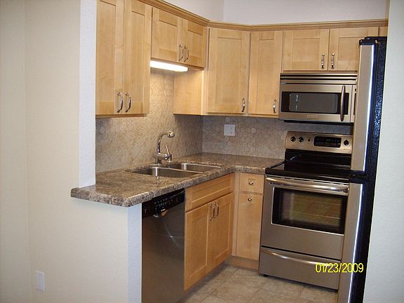 Upgraded Condo in the highly sought after guard-gated community of Crestview at Canyon Lakes. This ground unit adjacent to the main pool boasts all stainless steel kitchen appliances and designer solid granite countertops in the kitchen and bath. The unit has crown moldings throughout, natural tumbled stone flooring in kitchen and bathroom and laundry area. Solid maple cabinets in kitchen and bathroom as well as a new high capacity washer and dryer in-unit. The unit has a large king-size bedroom, brand new luxury vinyl plank flooring in the living room, hallway and bedroom. Designer paint throughout and a wood burning fireplace with custom surround and wood mantle. This unit also has a brand new HVAC system.