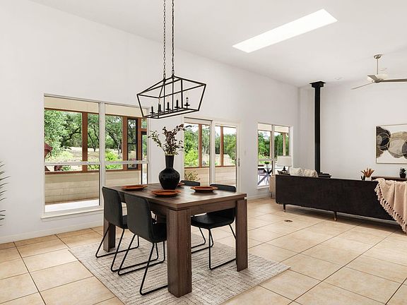 Enjoy true Hill Country living in the heart of Dripping Springs! This private 5+-acre estate is just a few turns off of the main roads, but offers incredible privacy, dark skies, and peace and quiet. A single-story home, 351 Fawn Meadow has an abundance of space, both indoors and out. this home offers a space for everything with oversized bedrooms, an open living/dining/kitchen, an office or studio, and a sunroom just waiting for all of your hobbies and slow weekend mornings. The kitchen impresses with hardwood cabinetry, an updated zellige backsplash, granite counters, designer hardware, a breakfast bar, and a center island - making it a great place for both cooking and entertaining. The open living and dining area are bright and airy, featuring high ceilings and a wood-burning fireplace, perfect for chilly evenings. The bedrooms are an in-law floor plan, two with exits onto the grand sunroom. One of the secondary bedrooms has a built-in murphy bed- making it a great multi purpose room. The sunroom is expansive, heated and cooled, and has the best views in the house! Closet space abounds with an enormous primary closet, large secondary closets, and linen closets. Watch wildlife while relaxing or use some of the space as an office and enjoy endless beautiful views! The studio/office is tucked away and could be used as a third living area, workspace, or is versatile enough to use as another sleeping space. There is covered parking for four cars, between the garage and the carport. Additional features include recent paint throughout (August 2025), a standing seam metal roof, rainwater collection that services the home, holding tank for the well, electric car charging station, and an additional storage area. Tour the property and all the "native" animals - sculptures placed to welcome and delight. 351 Fawn Meadow is minutes from downtown Dripping Springs, H-E-B, Belterra Village, and a quick drive into Austin.