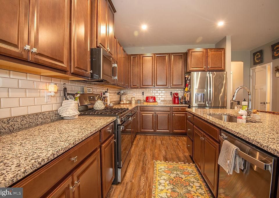 Stainless steel appliancesGranite countertopsOverlooks the backyardThree bedroomsVinyl railingsWalk in pantryTile backsplash