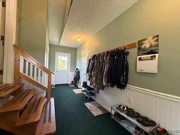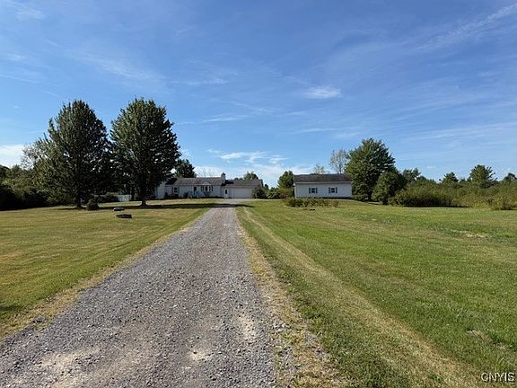 This home is what dreams are made of! Nestled on 4.5 acres and set back from the road, this property offers the perfect blend of privacy and convenience- just minutes from Route 11, I-81 and directly adjacent to snowmobile and ATV trails. Outdoors, you will find nearly twenty mature blueberry bushes, a large garden area, a new playset and a sparkling in-ground pool. The oversized detached garage provides abundant room for vehicles and storage, while the attached garage adds even more space with attic access above. A breezeway with dual coat closets connects the garage to the home for everyday functionality. Inside, the kitchen and dining area provide plenty of space to gather, flowing into a bright living room with a gas fireplace and sliding glass doors to the deck, pool and fenced back yard. The first-floor primary bedroom is thoughtfully situated across from the full bath and laundry room for ease and convenience. Upstairs, there are three bedrooms with a new bathroom. The partially finished basement expands your living space with a wood-burning fireplace, home gym, a third bathroom and generous storage in the utility room. Major improvements include a new hot water heater, pool liner and air conditioning this year! This home includes two tax parcels conveying together for a combined 4.5 acres- giving you room to grow, entertain and enjoy the best of country living with every modern convenience.