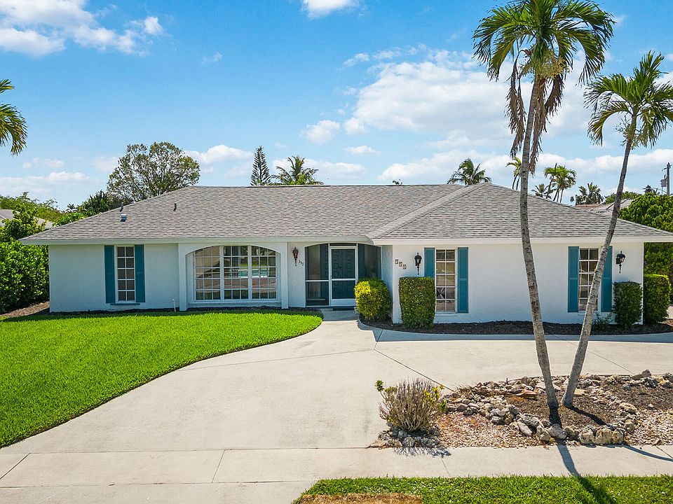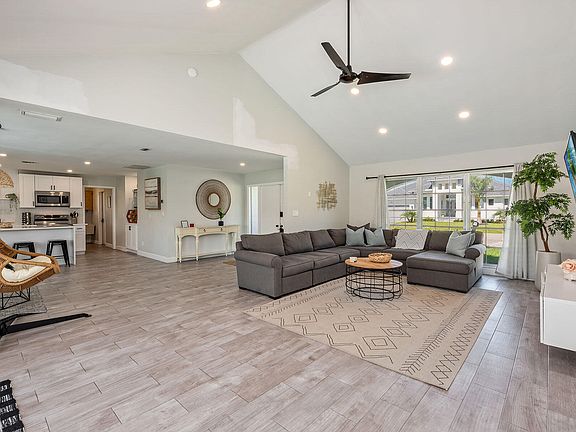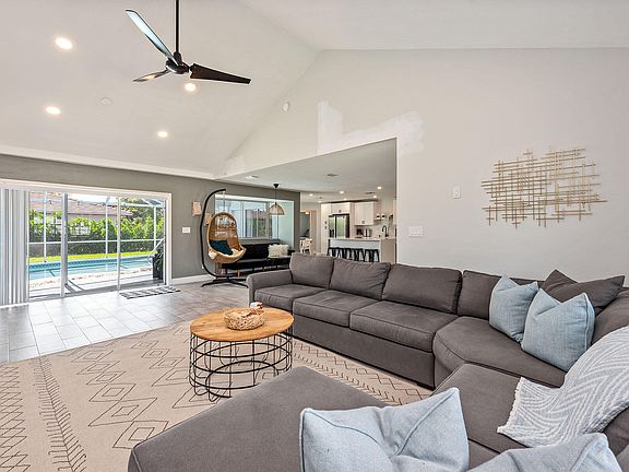 A beautifully remodeled home in highly sought-after Marco Island. This redesigned 3-bedroom, 2.5-bathroom residence offers a generously sized living area flooded with natural light. The open concept design has been thoughtfully updated with wood-like ceramic tile floors and a fresh painted color palette that seamlessly unites all spaces. The remodeled kitchen is the heart of the home, featuring NEW Samsung stainless appliances, white shaker-style cabinets, quartz countertops, and a large 4-seater island with waterfall edge that makes it the ideal place for gatherings. Both bathrooms have been completely revamped, showcasing designer fixtures, exquisite tilework, and sleek vanities that resonate with the overall aesthetic of the home. The master suite provides a serene retreat after a long day with a spa-like bathroom and walk-in closet. Outside is equally captivating with a screened-in pool and plenty of space for relaxation and entertainment. Additional perks include NEW Samsung washer and dryer, NEW sprinkler system, NEWER water heater, NEWER pool heater, and a large corner lot with a long circular driveway and 2-car garage. Don't miss this extraordinary opportunity!