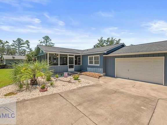 Nestled on a tidal creek, this beautifully maintained home offers the ultimate waterfront lifestyle, complete with a private dock, boat launch, jet dock, and fish cleaning station—perfect for boating and fishing enthusiasts. Just a short golf cart ride from Halfmoon Marina and a quick drive to Sunbury Crab Company, you'll have easy access to all the best local attractions. The home features 3 spacious bedrooms, 2 bathrooms, and a 2-car garage, with laminate flooring throughout, giving the entire space a clean, modern feel. The heart of this property is the stunning 25 x 40 screened-in pool, offering breathtaking views of the water—ideal for relaxing or entertaining guests in style. Step outside onto the large screened-in front porch to take in the expansive front yard, or head beyond the back porch to the impressive outdoor cook shed. This 28 x 40 space is a chef's dream, with a custom-built stainless steel sink, old cast iron fireplace, and spray foam insulation to keep things comfortable year-round. Two large roll-up doors and additional access doors ensure easy flow for large gatherings, while an attached utility shed keeps your tools and supplies organized and out of sight. Whether you're hosting a summer BBQ, frying up your latest catch, or simply enjoying a serene afternoon by the water, this property has it all. A perfect spot for weekend getaways or retirement relaxation, don't miss the chance to make this one-of-a-kind retreat your own.