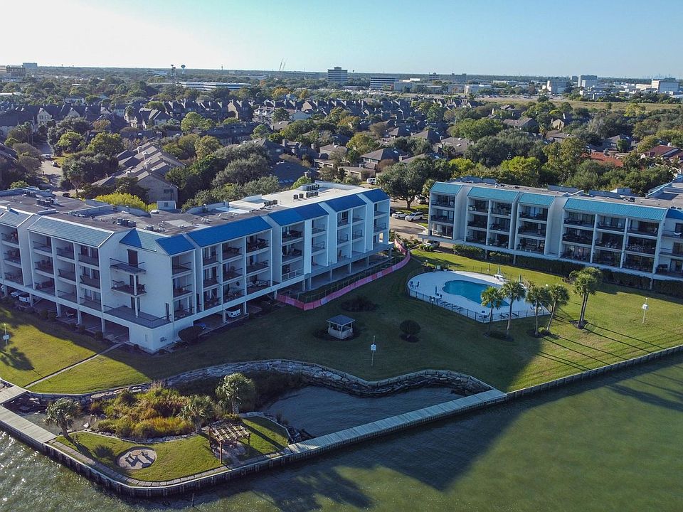 Experience the best of waterfront living in this beautifully updated one-bedroom condo with stunning panoramic views of Clear Lake. This condo offers elevator access right to your front door, lush mature landscaping, and a sparkling waterfront swimming pool just steps away. Inside, you'll find laminate flooring throughout, a spacious master suite with a generous primary bath featuring a walk-in shower, walk-in closet, plus a washer, dryer, and refrigerator included. The galley kitchen opens into the living space, where you can enjoy the views while cooking or entertaining. A cozy fireplace adds charm, and a convenient half bathroom makes hosting guests easy. Located in Nassau Bay, this condo puts you right on Clear Lake with easy access to great restaurants, shopping, and entertainment. The community is known for its waterfront lifestyle, mature landscaping, and close proximity to NASA's Johnson Space Center