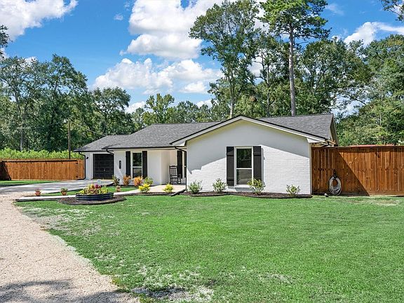 Better than new! This fully renovated 3-bed, 2-bath home sits on over half an acre in New Caney’s sought-after WoodBranch community. Move-in ready with granite countertops, new cabinets, luxury vinyl plank flooring, sculptured carpet (2025), and fresh interior/exterior paint (2025). Energy-efficient upgrades include thermal windows (2023), foam insulation, new HVAC and ductwork (2023), hybrid water heater (2024), and roof (2024). Additional features: rebuilt garage door, generator-ready panel, water softener, LED lighting, security system, new/painted fencing, gutters, and exterior lighting. Spacious circle driveway and NO HOA! Prime location, minutes from Valley Ranch Town Center with quick access to Hwy 59 & Grand Parkway 99. Per seller, home has never flooded. Washer, dryer, and refrigerator included. With this many upgrades, it won’t last long! Schedule your showing today!