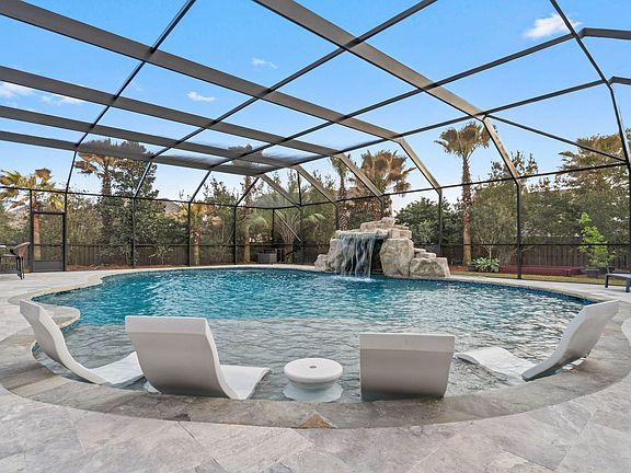 Live the resort lifestyle in this stunning 4-bedroom, 3.5-bath two-story home with bonus room, office/flex space, and a 2-car garage nestled in the award-winning Hammock Bay community in Freeport. Enjoy your own private screened-in paradise with the largest heated pool in Hammock Bay, complete with spa, waterfall, outdoor TV, gas fireplace, and fully equipped outdoor kitchen featuring a gas grill, pizza oven, and ceramic charcoal grill, pool service is included. Inside, the home features a gourmet kitchen with granite countertops, stainless appliances, large island, custom cabinetry, and walk-in pantry. The spacious layout includes a main-level primary suite with double vanities and walk-in closet, formal dining room, wet bar, and a large upstairs bonus/game room with snack bar. Designer touches include gas fireplaces, scenic landscape lighting, hardwood/tile flooring, and plenty of storage. Smart and secure with a whole-home generator, tankless water heater, emergency irrigation well, built-in and Ring security systems (monitoring optional). Cable, pest control, and pool service included.