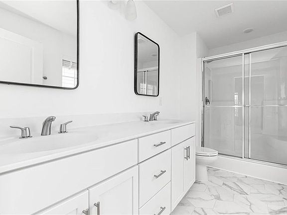 Built in 2021 and meticulously maintained, this stunning 4-bedroom, 3.5-bath home combines modern design with everyday comfort in a sought-after community. The open-concept layout is filled with natural light and showcases upgraded flooring throughout the first floor. The main-level primary suite features a beautifully appointed ensuite bath, offering convenience and privacy.The spacious kitchen opens seamlessly to the dining and living areas ideal for entertaining or relaxing with family. Upstairs, youll find a second primary suite complete with a generous walk-in closet, dual vanity, and walk-in shower.Step outside to enjoy the expansive, fenced-in patioperfect for morning coffee, weekend gatherings, or evenings under the stars. The vibrant community offers resort-style amenities including a pool, clubhouse, playground, and front yard maintenance. This home truly blends style, comfort, and convenience in one perfect package!