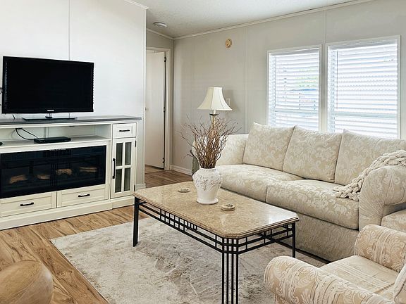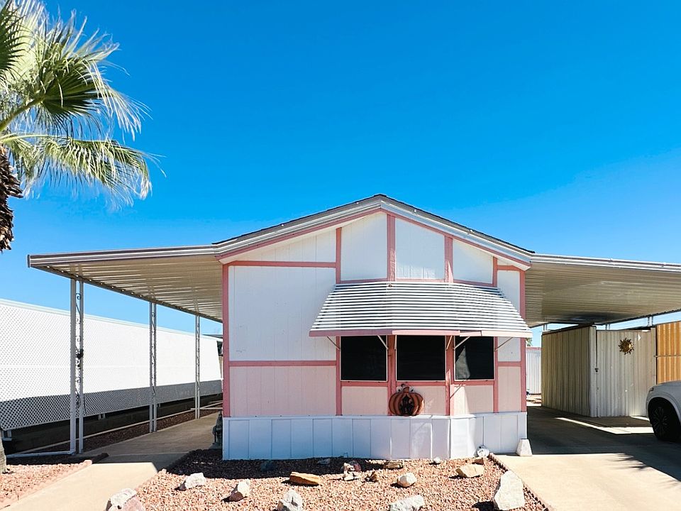 Located in the peaceful gated 55+ Meridian community, this spacious and move-in-ready 1996 Skyline Meadow Ridge home (16x66, 1,056 sq. ft.) offers comfort, charm, and convenience. Family owned since new and situated along the quiet back wall of the park, this home has been thoughtfully renovated in 2025 with a freshly painted exterior and updated bathroom. Over the past four years, additional upgrades include a new asphalt roof, stainless steel appliances, a modern water heater, and a new A/C heat pump system. Inside, enjoy an open and inviting layout with a large pass-through kitchen featuring beautiful oak cabinetry, a stainless refrigerator, dishwasher, range, and plenty of counter space. The dining area opens to a bright living room and cozy den or office. The primary bedroom includes an en suite bathroom, and the guest room provides comfort and privacy for visitors. Laundry is conveniently located in the home. Step outside to enjoy Arizona living at its best-a screened porch for relaxing, a patio for entertaining, and a double carport with a storage shed. Desert landscaping keeps maintenance easy while providing a welcoming curb appeal. Meridian residents enjoy a vibrant, active community lifestyle with amenities including a heated pool, spa, fitness center, rec hall, library, clubhouse, and pet-friendly walking areas. Located near grocery stores, dining, and bus access, this home offers affordable and relaxed 55+ living in the heart of Apache Junction. #55PlusCommunity #ActiveSeniorLiving #GatedCommunity #ApacheJunction #MeridianPark #UpdatedHome #SnowbirdRetreat #ArizonaRetirement #ManufacturedHomeForSale #AffordableLiving #MesaSnowbirds