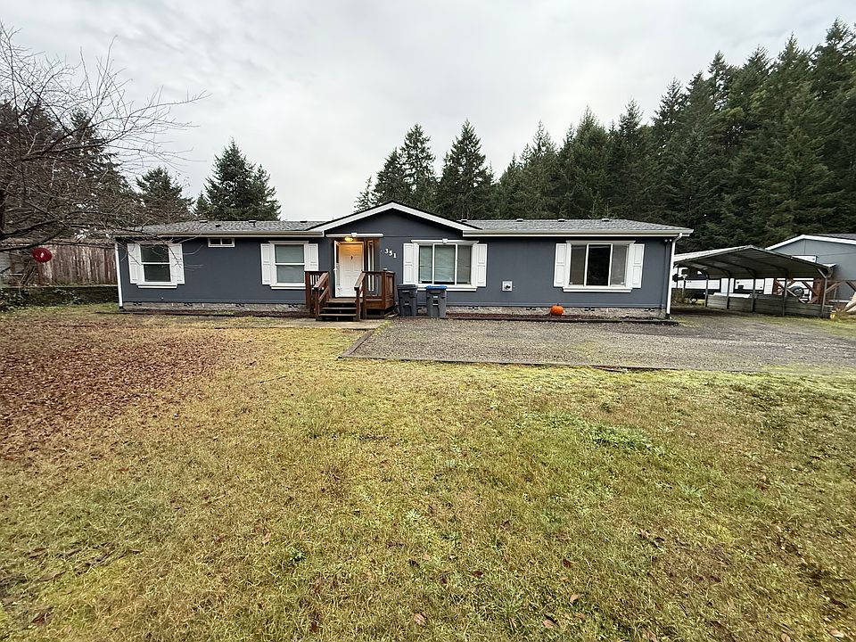 This 1,782 sq. ft. 3 bedroom, 2 bath home features LR, DR, Family RM, ensuite bath with soaking tub and a bright kitchen with skylight. Luxury vinyl plank flooring, fresh paint inside and out. Other amenities include large deck, garden area, carport and storage shed. There is electric forced air heat plus a pellet stove, so you can manage your heating costs. Just 25 minutes to Puget Sound Shipyard. This is a very nice rental! $2,200 per month, first and last, plus $2,000 deposit. Tenant pays utilities. No pets. $45 credit application fee for each adult. Looking for tenant with good rental history, decent credit and steady income of at least three times the monthly rent. One year lease. Available February 7, 2026.