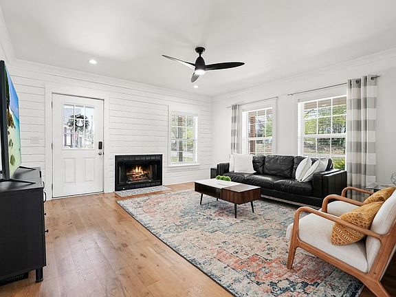 This charming 3-bedroom, 3-bath residence is nestled on a serene side street in Ball Ground. Enjoy the peaceful life of downtown Ball Ground. Walk to the many restaurants, coffee shops, shopping outlets, and a local brewery. Additionally, Ball Ground boasts its own public pickleball courts for outdoor fun and exercise. This inviting home boasts a large front porch, perfect for enjoying the peaceful surroundings. Inside, you'll find hardwood floors throughout the open-concept living and dining areas, complemented by abundant natural light streaming in through the many windows. This home features a spacious, open-concept living room ideal for entertaining. The heart of the home is the spacious kitchen, featuring a large Viking gas range and quartz countertops. A cozy den area provides a perfect space for relaxation or entertainment. On the main floor, a beautiful full-size bathroom showcases an antique clawfoot tub and antique vanity, adding a touch of vintage charm. Convenience is key with a separate laundry/mudroom that has an exterior entrance. Upstairs, the original beadboard ceilings and original refinished hardwood floors add historical charm and warmth, continuing into the three bedrooms, including a luxurious master suite with a walk-in shower and soaking tub. With three full baths in total, this home offers ample comfort and convenience for residents and guests alike. Step outside to discover a large fenced backyard complete with a gazebo, offering a private oasis for outdoor gatherings and leisure. Make this retreat your own in the heart of Ball Ground!