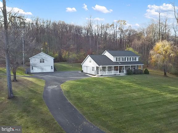 Welcome to this stunning rural retreat! This spacious 3/4 bedroom home is designed for comfort and style, offering an inviting layout that begins on the main floor. Step into the open and airy first level, featuring a spacious kitchen perfect for entertaining, a formal dining room, a cozy living room with a fireplace, and a family room that provides the ideal space for relaxation. The charm of this home extends outdoors with a large covered front porch overlooking breathtaking views, and a covered rear patio perfect for gatherings, with convenient access to the attached garage. Upstairs, the primary bedroom suite offers a private haven with an en suite bathroom and a walk-in closet. A large bonus room on this floor provides flexible space, serving as a potential fourth bedroom, office, or playroom along with two additional bedrooms and a full bath. The property also includes a two-level detached garage with a hoist, offering abundant parking, workshop space, and storage options. The scenic backyard completes this country retreat with a scenic pond, providing a peaceful setting surrounded by nature. The large unfinished basement, with plumbing roughed in for an additional bathroom, offers even more potential for expansion. This home has a whole house vac for cleaning convenience. Fresh paint an new flooring throughout. New roof, gutters and skylights from DePalma Construction in 2022. New furnace in 2020. Don’t miss your chance to own this beautiful home in a truly idyllic setting!