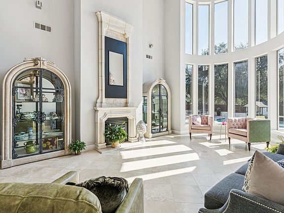 Stone fireplaceCast stone gas fireplaceIndoor basketball courtViking outdoor kitchenDouble staircaseTravertine stonePrivate gated estate